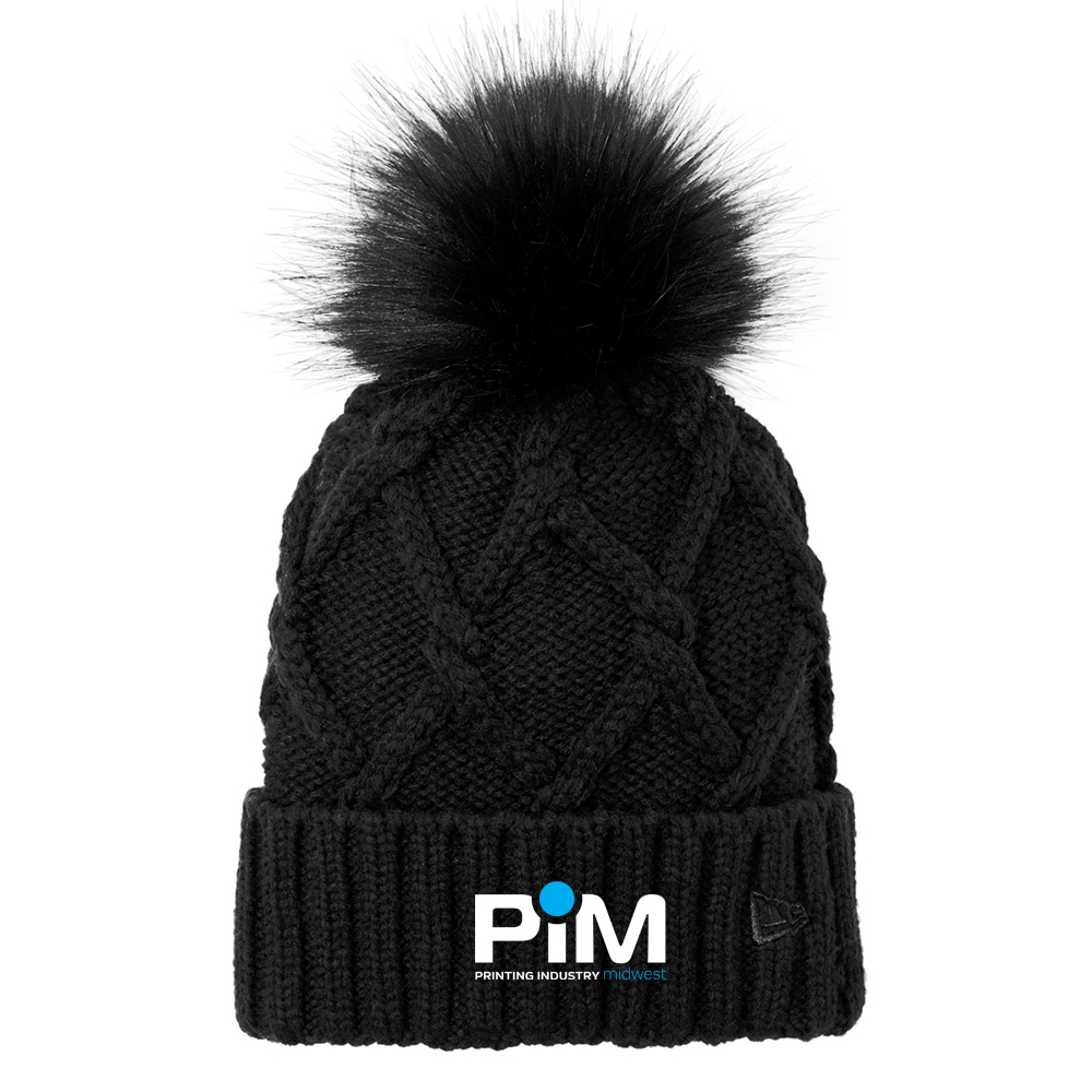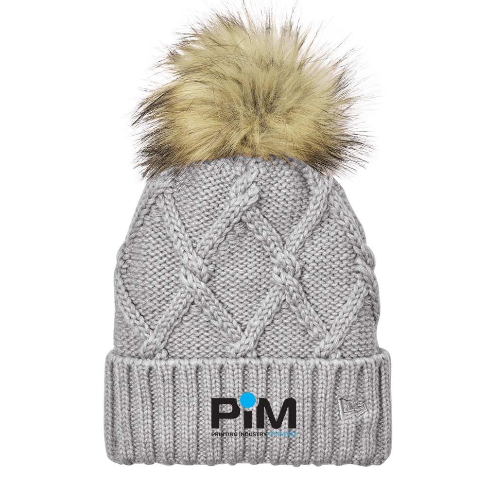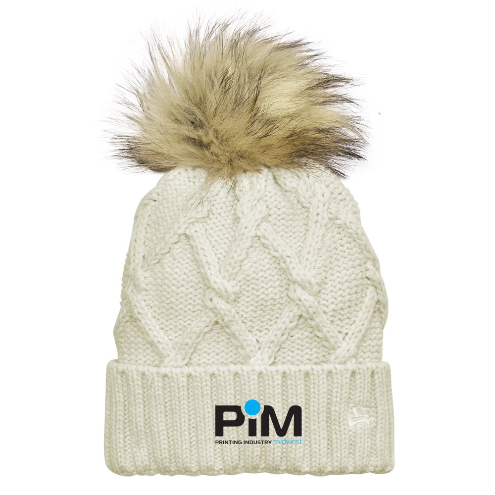 Totally on-trend, this ladies beanie has a thick ribbed cuff and a cable knit crown that’s topped off by a fun faux fur pom.